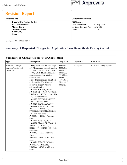 Meide Group's national and Japanese standard ductile iron groove fittings have obtained FM certification