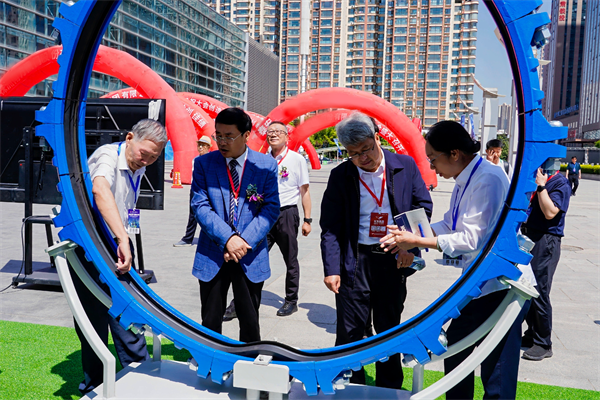 原甘肅省水利廳一級巡視員、甘肅省水利學會理事長吳天臨參觀玫德集團自主研發的大口徑鋼管柔性連接技術