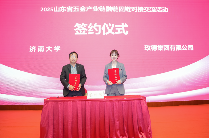 濟(jì)南大學(xué)機(jī)械學(xué)院教授鐘文鎮(zhèn)與玫德集團(tuán)有限公司人力資源部招聘中心總監(jiān)馮楊簽署《科教產(chǎn)教協(xié)同育人聯(lián)合培養(yǎng)材料類專業(yè)學(xué)位研究生協(xié)議》
