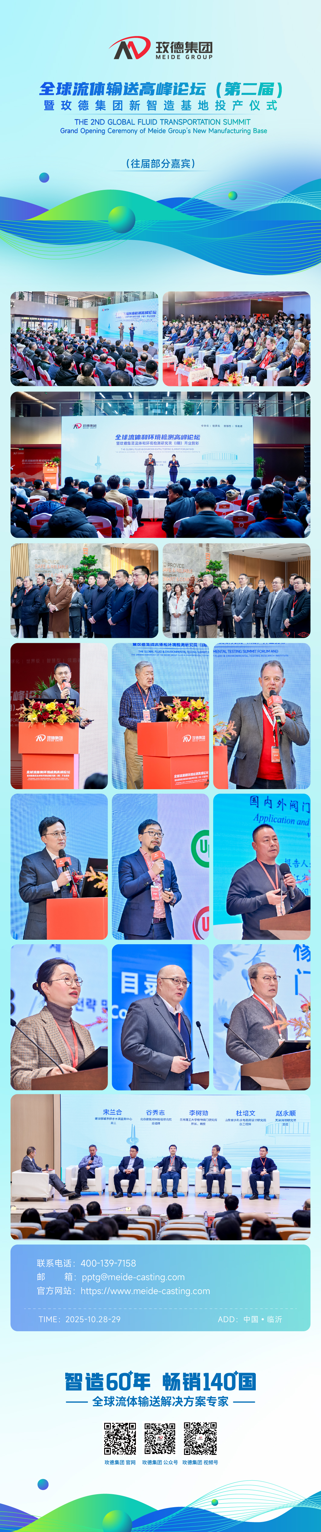 全球流體輸送高峰論壇(第二屆)暨玫德集團新智造基地投產儀式將于2025年10月28日至29日在山東臨沂隆重召開!本屆論壇將邀請全球頂尖專家及學術骨干等300余人,匯聚行業智慧,共探前沿技術。論壇將聚焦市政、建筑、工業與電力等領域,圍繞行業政策、發展動態與未來展望開展深度研討,共同探討行業發展的新機遇與新挑戰。