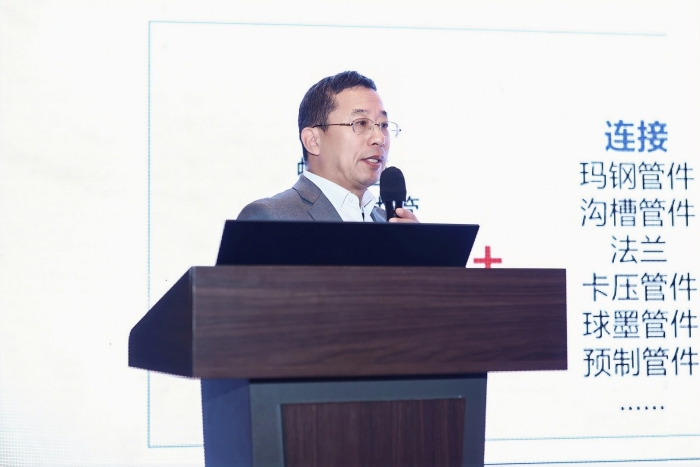 玫德集團市政BG水利BU球墨管材管件研發部經理孫允月發表《球墨鑄鐵管助力現代管道系統建設》主題演講,緊扣城鎮水務發展核心需求,剖析了球墨鑄鐵管在行業中的應用價值與發展趨勢,重點介紹了玫德集團的產品優勢、玫德鑄管的核心優勢:產品覆蓋標準全、規格全、壁厚等級全、接口連接方式全,產品實現DN80-DN2600全規格覆蓋,配套多系列管件可按需定制,適配市政供水、水利工程、排水防洪等多場景;依托高純鐵水生產、“一罐到底”短流程等領先工藝,以及全自動化智造產線,鑄就產品硬核品質;同時打造“產品+解決方案”一站式服務,覆蓋智慧水務管理、管道安全監測等全產業鏈,搭配全球化高效服務網絡,為管道系統建設提供全生命周期保障。